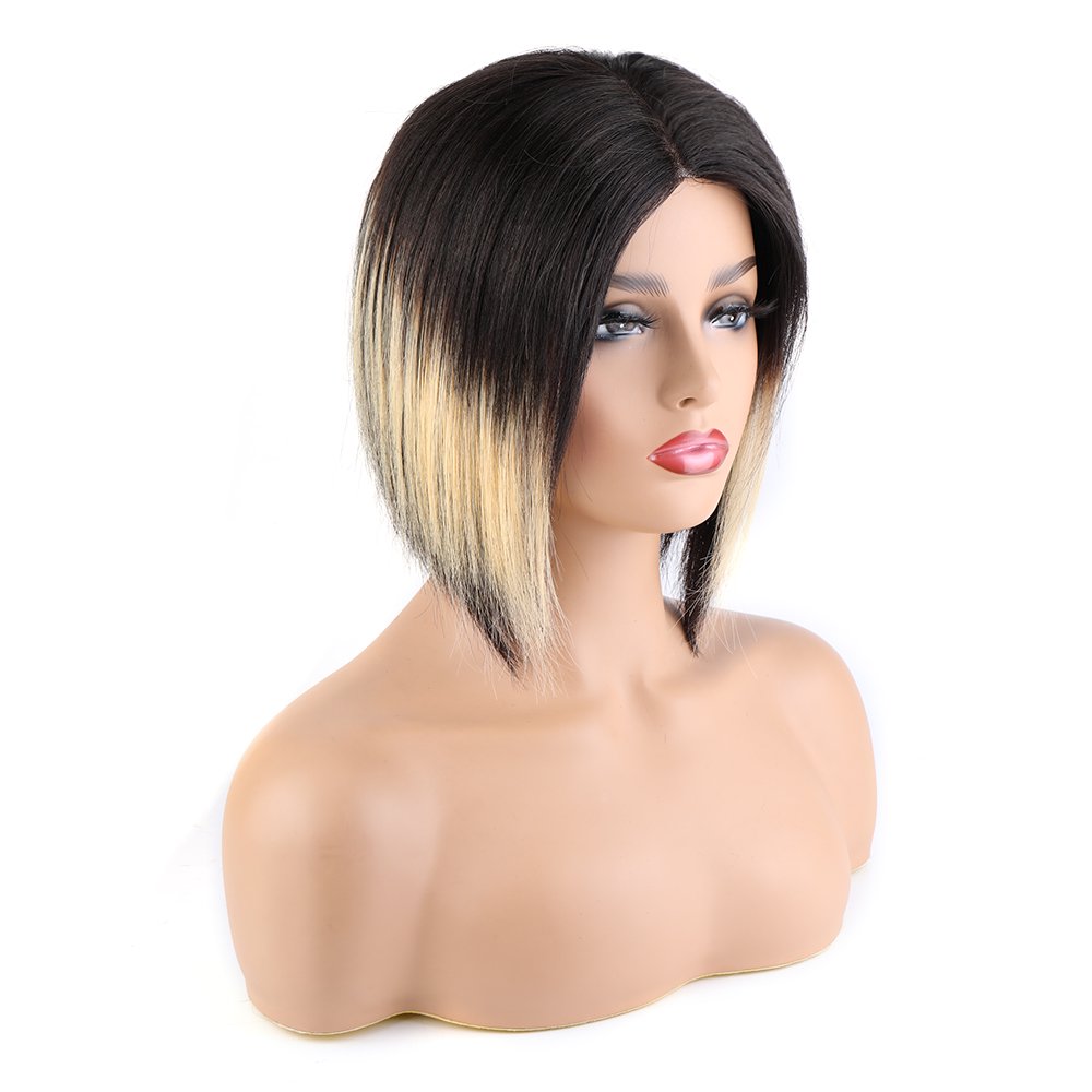 Short Bob Straight Lace Front T Part Synthetic Hair Wig Ombre Ginger Lolasilk